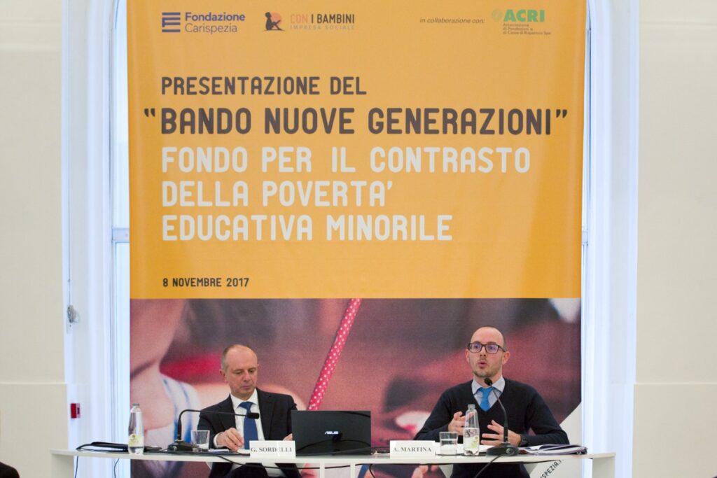 E’ stato presentato mercoledì 8 novembre nella sede della Fondazione Carispezia il “Bando Nuove Generazioni”, il terzo bando promosso dal Fondo per il contrasto della povertà educativa minorile, il Fondo nazionale sostenuto dalle Fondazioni di origine bancaria, tra cui anche Fondazione Carispezia, in base ad un accordo tra Acri, Governo e Forum nazionale del Terzo Settore.