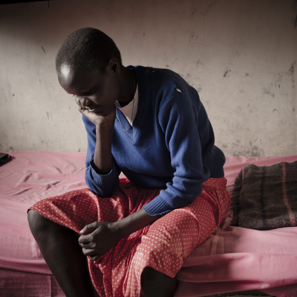 Sharon, 15 anni, una delle ospiti del centro di recupero nella scuola di Kongelai, é fuggita da casa per evitare la MFG e il matrimonio combinato dalla sua famiglia con un uomo di 60 anni. Dopo la sua fuga, la madre di Sharon si è suicidata. Kongelai, Kenya, 2015.