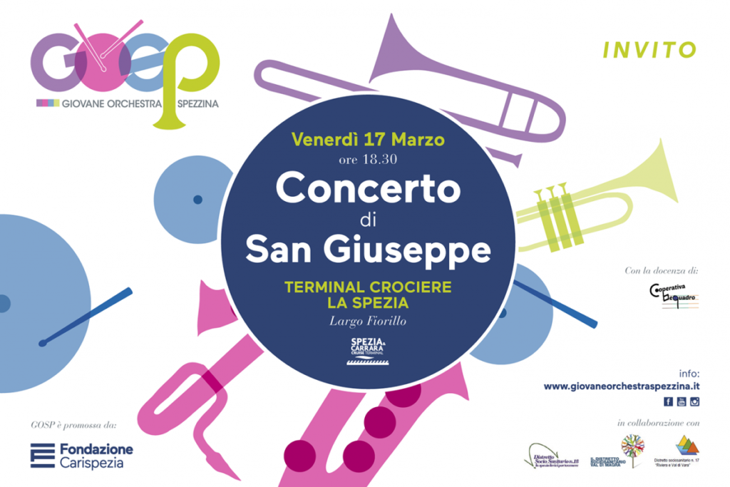 In occasione della festa patronale della città, GOSP – Giovane Orchestra Spezzina si esibirà in concerto, venerdì 17 marzo alle ore 18.30, presso la sede del Terminal Crociere in Largo Fiorillo alla Spezia.